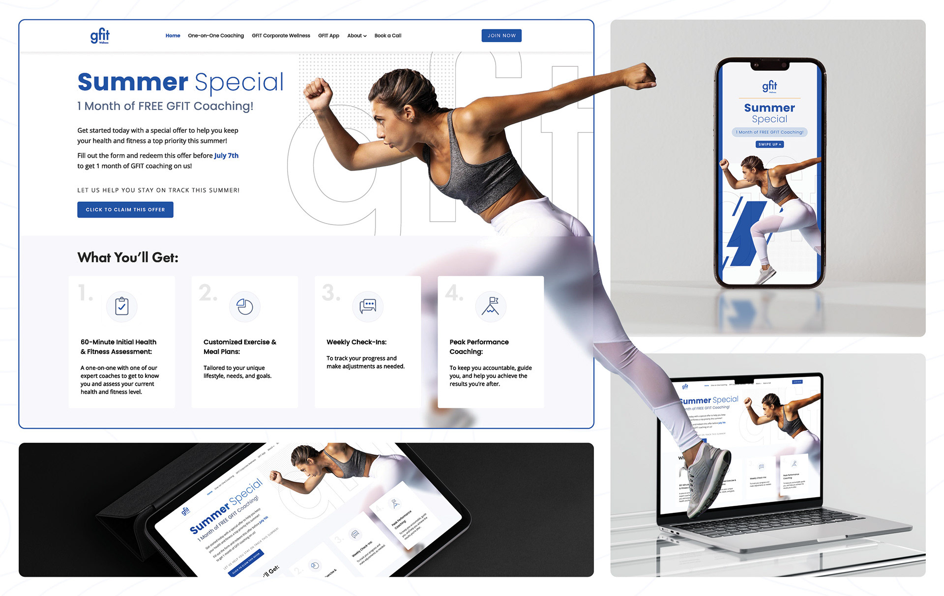 The goal of this project was to create a modern and engaging landing page paired with cohesive social media assets that highlight GFIT Wellness' commitment to holistic health and well-being.